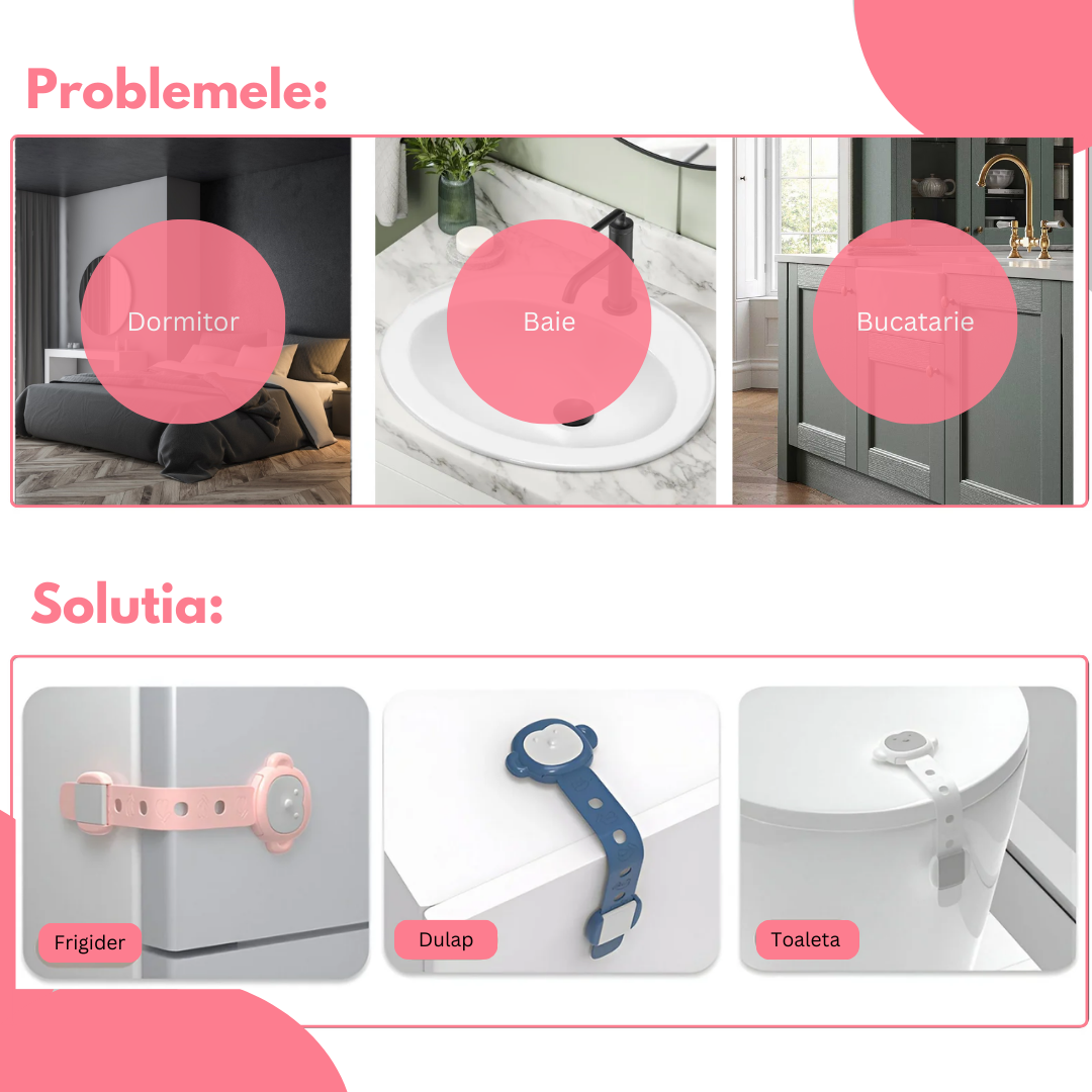 🛡 Protejează-ți copilul de pericolele din casă cu siguranța multifuncțională pentru uși, dulapuri și sertare! Evită accidentele casnice și asigură un mediu sigur pentru cel mic.